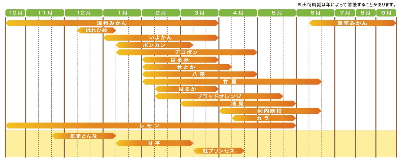 愛媛県では、ほぼ1年を通して柑橘が出荷されております。